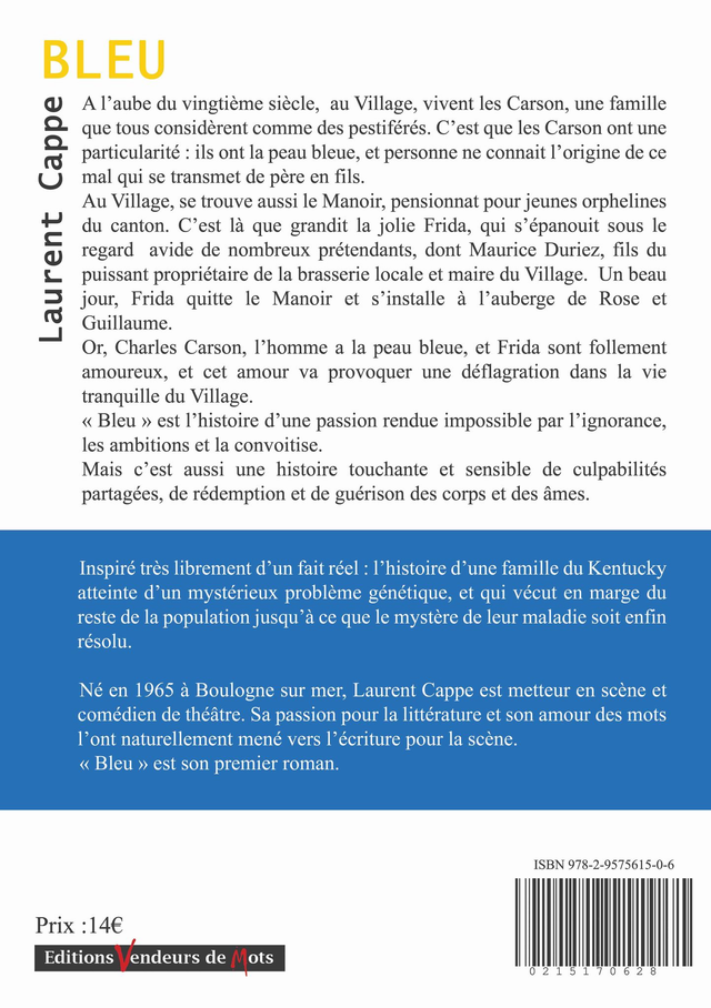A l’aube du vingtième siècle, au Village, vivent les Carson, une famille que tous considèrent comme des pestiférés. C’est que les Carson ont une particularité : ils ont la peau bleue, et personne ne connait l’origine de ce mal qui se transmet de père en fils. Au Village, se trouve aussi le Manoir, pensionnat pour jeunes orphelines du canton. C’est là que grandit la jolie Frida, qui s’épanouit sous le regard avide de nombreux prétendants, dont Maurice Duriez, fils du puissant propriétaire de la brasserie locale et maire du Village. Un beau jour, Frida quitte le Manoir et s’installe à l’auberge de Rose et Guillaume.