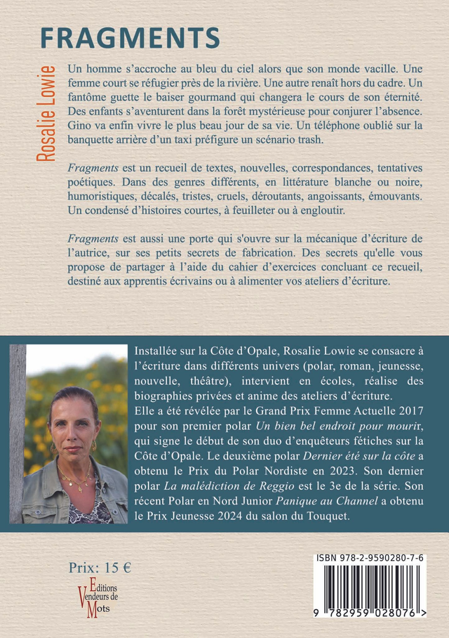 Un condensé d’histoires courtes, à feuilleter ou à engloutir. "Fragments" est aussi une porte qui s'ouvre sur la mécanique d'écriture de l'autrice, sur ses petits secrets de fabrication. Des secrets qu'elle vous propose de partager à l'aide du cahier d'exercices qui conclut ce recueil. Un cahier destiné aux apprentis écrivains ou à alimenter vos ateliers d'écriture.